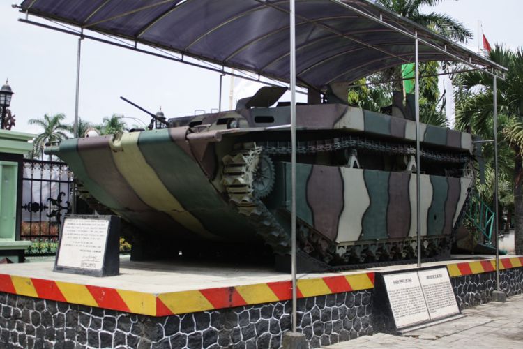 Salah satu benda yang menarik perhatian pengunjung di Museum Brawijaya adalah berbagai kendaraan yang dipajang di halaman depan. Salah satu kendaraan yang cukup jelas adalah Tank Amfibi AM-TRACK.