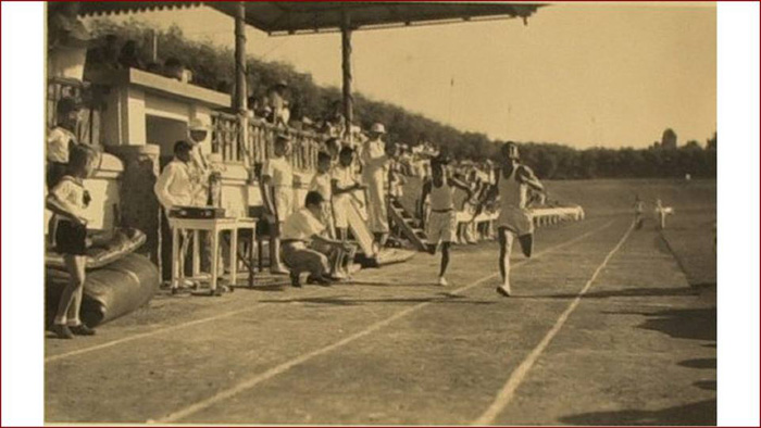 Sebuah arsip foto tahun 1936 memperlihatkan sebuah kegiatan olahraga yang dilakukan di Stadion Gajayana.