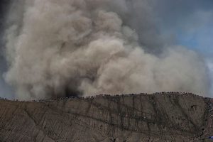 Erupsi Gunung Bromo yang membuat statusnya menjadi waspada tidak mengurangi kekhusukan warga Suku Tengger...